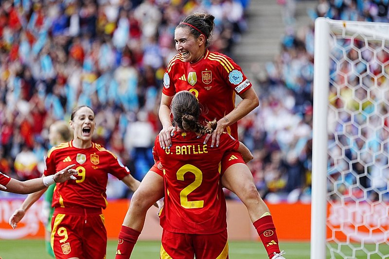 Matchwinnerin vor 34.203 Zuschauern im ausverkauften St. Jakob-Park in Basel war Torhüterin Hannah Hampton, die die Bälle vom Punkt von Mariona Caldentey und Aitana Bonmatí hielt. Die eingewechselte Salma Paralluelo verschoss zudem. Chloe Kelly verwandelte den entscheidenden Versuch und sorgte so für riesengroßen Jubel bei den Engländerinnen.
