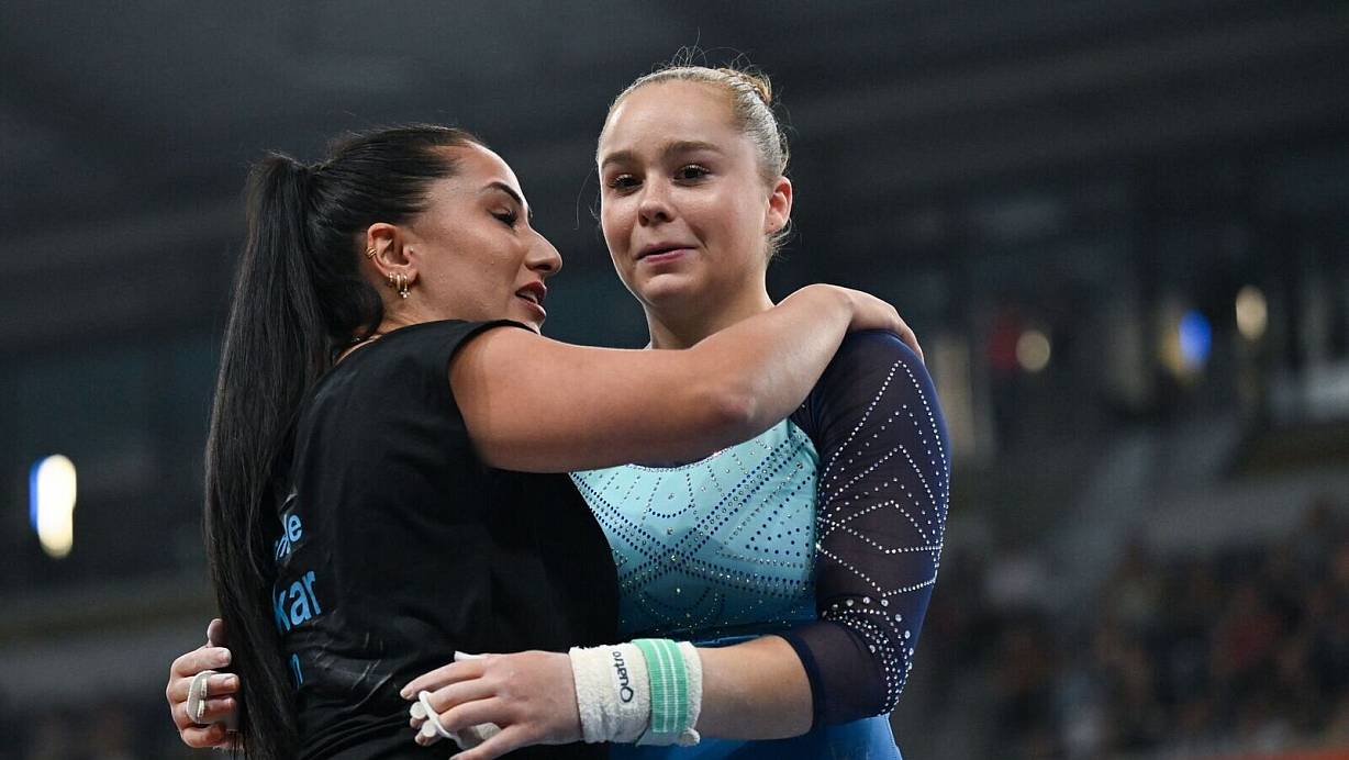 Unterdessen hat Timo Eder seinen zweiten Titel gewonnen. Zwei Tage nach seinem Premierensieg im Mehrkampf sicherte sich der Mixed-Europameister aus Ludwigsburg mit 13,466 Punkten auch Platz eins am Boden. Barren-Europameister Nils Dunkel aus Halle/Saale gewann die Entscheidung am Pauschenpferd mit 13,633 Zählern vor Eder. An den Ringen siegte Alexander Kunz (Pfuhl) mit 13,566 Punkten.