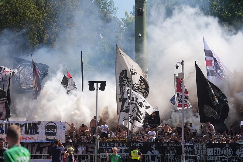 Anhänger von Eintracht Frankfurt zündeten zu Spielbeginn Rauchbomben. - © Thomas Frey/dpa