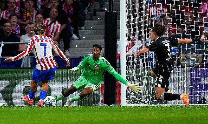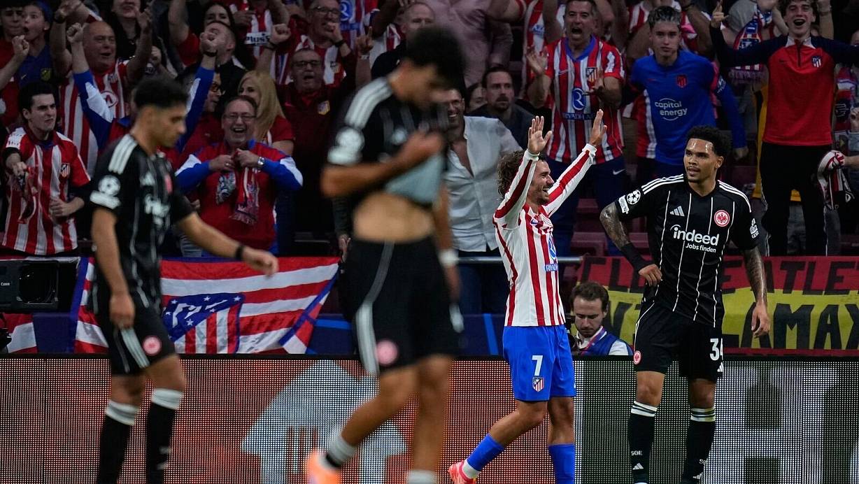 Deftige Pleite statt erneuter Fußball-Party: Eintracht Frankfurt hat das Gastspiel bei Atlético Madrid mit 1:5 (0:3) verloren und nach dem starken Auftakt einen herben Dämpfer in der Champions League kassiert. Giacomo Raspadori in der 4. Minute, Robin Le Normand (33.), Antoine Griezmann (45.+1), Giuliano Simeone (70.) und Julián Alvarez (82./Handelfmeter) erzielten die Tore für die in allen Belangen überlegenen Spanier, die dem Bundesligisten eine Königsklassen-Lektion erteilten.