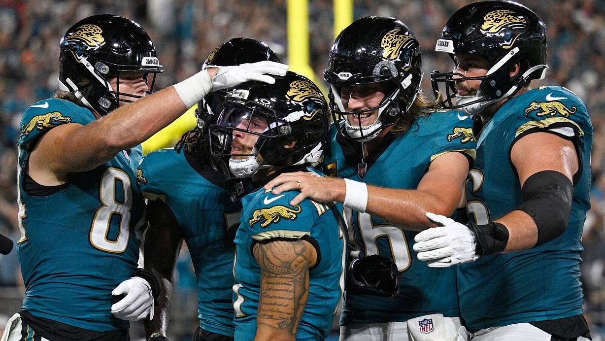 Die Jacksonville Jaguars haben einen 14-Punkte-Rückstand gegen die Kansas City Chiefs gedreht und ihren vierten Saisonsieg eingefahren. Beim 31:28 gegen das Team um Patrick Mahomes und Travis Kelce besorgte Jaguars-Quarterback Trevor Lawrence den entscheidenden Touchdown 23 Sekunden vor Ende der Partie - und das an seinem 26. Geburtstag. Die Jaguars zählen nun mit vier Siegen aus fünf Spielen zur Spitzengruppe der NFL, keine Mannschaft hat eine bessere Bilanz.