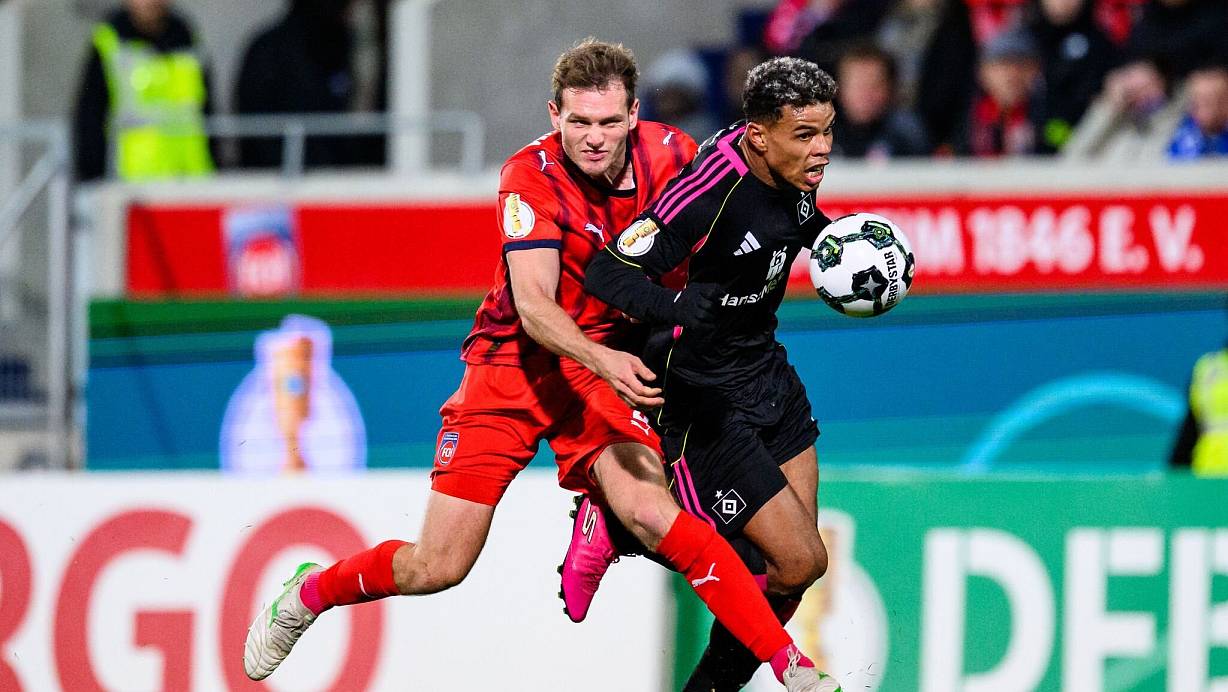Die Hamburger erwischten die bessere Anfangsphase. Doch das mit dem Toreschießen war wie schon zuletzt beim 0:1 in der Liga gegen den VfL Wolfsburg zunächst ein Problem. In den ersten Minuten ließen die Gäste gleich zwei gute Chancen aus: Kapitän Miro Muheim schoss den ausgerutschten Heidenheimer Omar Traoré an (3.), Ransford-Yeboah Königsdörffer scheiterte mit einem Schuss aufs kurze Eck am aufmerksamen Torwart Diant Ramaj (7.).