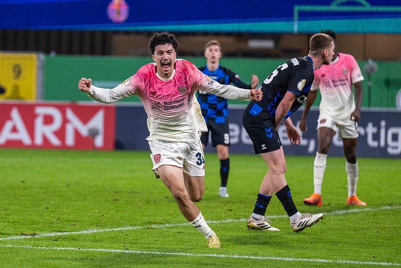 Ibrahim Maza traf für Bayer Leverkusen zum 3:2 in der Nachspielzeit der Verlängerung. (© David Inderlied/dpa)