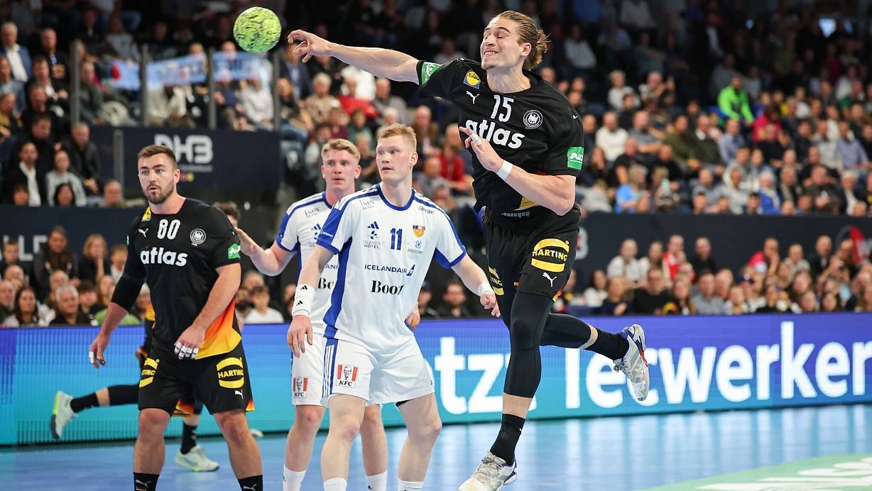 Angeführt von Juri Knorr in Bestform und Weltklasse-Keeper Andi Wolff haben die deutschen Handballer bei ihrem Comeback nach fast einem halben Jahr mächtig überzeugt und Island düpiert. Die Mannschaft von Bundestrainer Alfred Gislason gewann das Testspiel in Nürnberg überraschend deutlich mit 42:31 (20:14) und tankte viel Selbstvertrauen für die EM in gut zehn Wochen.