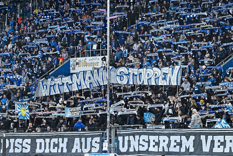 In der Südkurve hingen große Protestbanner gegen den Spieleragenten. Rund um das Sinsheimer Stadion hatte eine Ultra-Gruppe Flyer verteilt mit einem Fahndungsaufruf Wittmanns. «Wittmann stoppen» hieß es auf zahlreichen in der ganzen Arena verteilten Plakaten - «Roger Wittmann, verpiss dich aus unserem Verein» auf einem großen Spruchband.