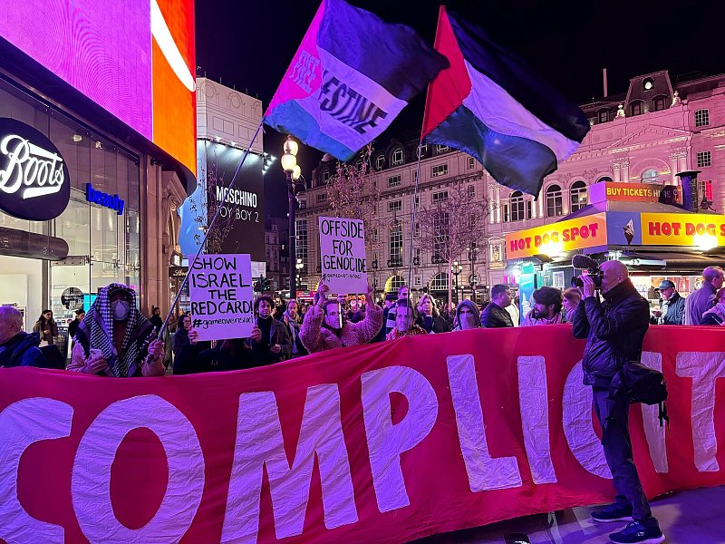 Vor der Auftaktveranstaltung für die EM 2028 in Großbritannien und Irland hat eine Gruppe Aktivisten auf dem berühmten Piccadilly Circus den Ausschluss Israels aus dem europäischen Fußball gefordert. Etwa 50 Menschen warfen der Europäischen Fußball-Union UEFA vor, Blut an den Händen zu haben. «Schande, UEFA», riefen die Menschen, einige trugen Papiermasken mit dem Gesicht von UEFA-Präsident Aleksander Ceferin.