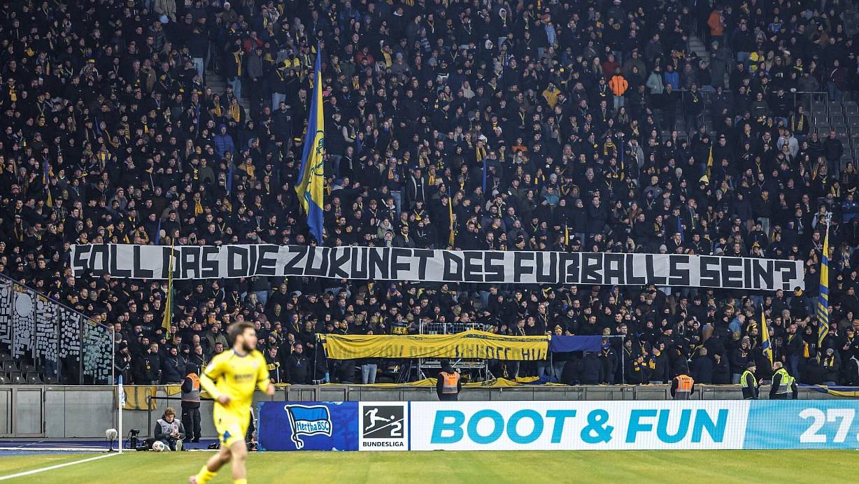 Auch bei den Zweitliga-Spielen von Hertha BSC gegen Eintracht Braunschweig und des VfL Bochum gegen Dynamo Dresden zeigten Anhänger kritische Banner. Zudem schwiegen die Ultras und viele weitere Fans in den ersten zwölf Minuten der Partien. «Soll das die Zukunft des Fußballs sein?» war auf Bannern im Olympiastadion und im Ruhrstadion begleitend zum Schweigen zu lesen.