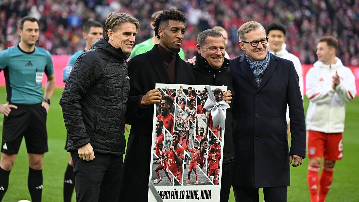 Vorstandsvorsitzender Jan-Christian Dreesen, Sportvorstand Max Eberl und Sportdirektor Christoph Freund dankten Coman kurz vor dem Anpfiff des Heimspiels gegen auf dem Rasen. Von den Rängen gab es viel Beifall. Auf der Ehrentribüne klatschten auch Ehrenpräsident Uli Hoeneß und Aufsichtsratsmitglied Karl-Heinz Rummenigge mit, als Coman noch einmal in der Allianz Arena ins Publikum winkte.