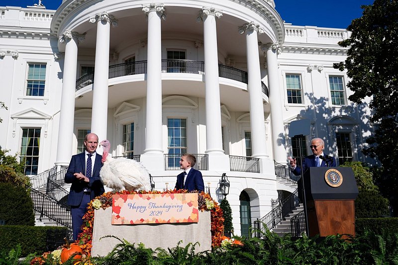 Wenige Tage vor dem amerikanischen Thanksgiving-Fest hat US-Präsident Joe Biden bei einer traditionellen Zeremonie zwei Truthähne begnadigt. Damit blieb den beiden Vögeln das Schicksal vieler Artgenossen an diesem Feiertag erspart. Die Truthähne, die der 82-Jährige bei dem Ritual auf dem Südrasen des Weißen Hauses vor dem Schlachten bewahrte, heißen «Peach» und «Blossom» (deutsch: «Pfirsich» und «Blüte»).