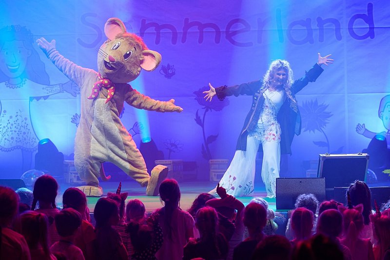 Sommerland gibt auf der Bühne alles: Sie fliegt wie ein Flieger, kreist die Arme wie die Räder vom Bus und wenn sie fröhlich ist, klatscht und stampft sie und ruft laut Hurra. Dabei lächelt sie unermüdlich, sucht das Gespräch mit ihren Zuhörern, beugt sich über den Bühnenrand, als wolle sie direkt in Kinderaugen zurückstrahlen.