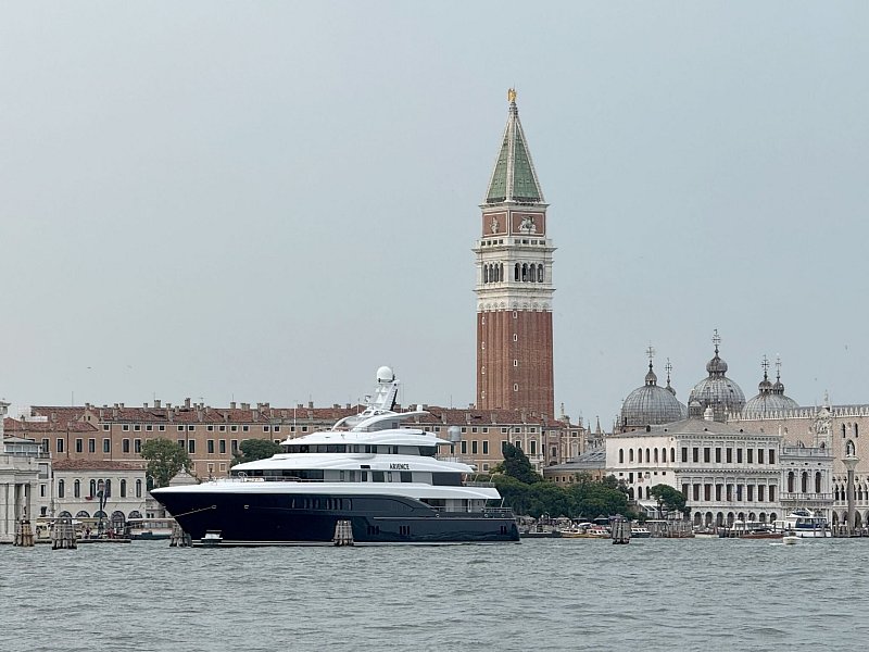 Wegen des Kriegs im Nahen Osten gilt derzeit in vielen europäischen Städten eine höhere Alarmstufe, auch in Venedig. Zudem haben Gegner der mindestens zehn Millionen Euro teuren Hochzeit Proteste angekündigt. Das Paar landete nun mit einem Hubschrauber, der von einem anderen seiner Schiffe aus gestartet war. Während der nächsten Tage werden sie nach Medienberichten in einem Fünf-Sterne-Hotel am Canal Grande wohnen.