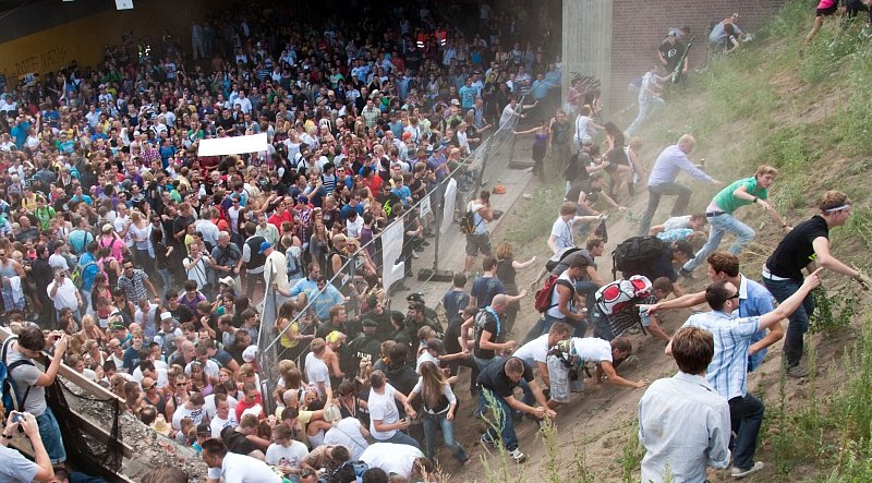 Der eigentliche Unglücksort war eine breite Rampe, die gleichzeitig Ein- und Ausgang zum Festivalgelände war. Am Nachmittag wurde das Gedränge dort immer größer. Aus mehreren Richtungen strömten Besucher unkontrolliert auf die Rampe.