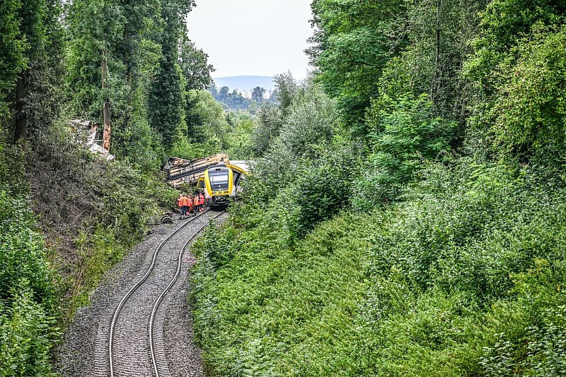 Auslöser des Unglücks war nach bisherigen Erkenntnissen der Erdrutsch an der Böschung. «Mutmaßlich lief durch den Starkregen, der sich im Bereich der Unfallörtlichkeit ereignete, ein Abwasserschacht über», teilen Polizei und Staatsanwaltschaft mit. Das Wasser habe den Hangrutsch ausgelöst, was wiederum wohl die Entgleisung verursachte.