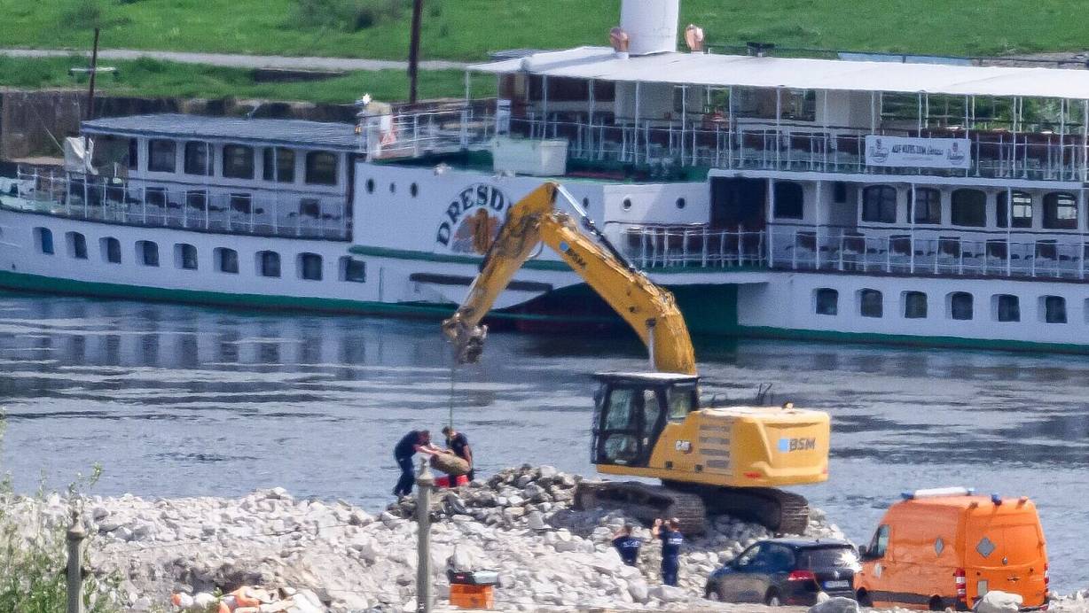 Die Bombe englischer Bauart war am Dienstag bei Räumarbeiten an der abgerissenen Carolabrücke gefunden worden. Die Brücke war im vorigen September teilweise eingestürzt, inzwischen steht von dem Spannbetonbauwerk in Dresden nichts mehr.