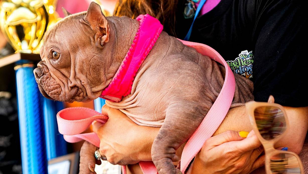 Jinny Lu, ein fünfjähriger Mops mit schief heraushängender Zunge, belegte den zweiten Platz. Er hatte schon 2023 an dem Wettbewerb teilgenommen, ging damals aber leer aus. Besitzerin Michelle Grady konnte sich nun immerhin über ein Preisgeld von 3000 Dollar freuen.