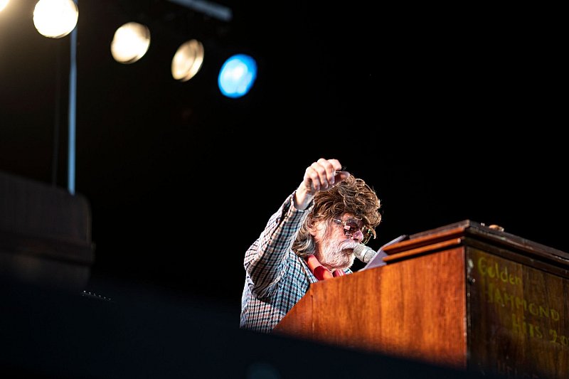 Wenn Helge Schneider die Bühne betritt, weiß man nie, was als Nächstes passiert. Mal sitzt er am Klavier und spielt eine virtuose Jazz-Ballade. Im nächsten Moment geht es vielleicht um Möhren und Katzenklos. Dazwischen: viel Schweigen, vielsagende Blicke ins Publikum - und plötzlich bricht der Klamauk wieder los.