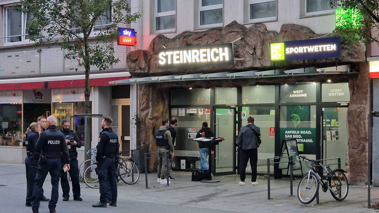 Die Polizei sperrte den Tatort mit Flatterband ab, mehrere Streifenwagen standen vor dem Sportwettengeschäft, die Spurensicherung war vor Ort. Um den Einsatzort standen einige Schaulustige, ein paar Meter weiter gingen Menschen wie üblich an einem Samstag ihren Einkäufen nach.