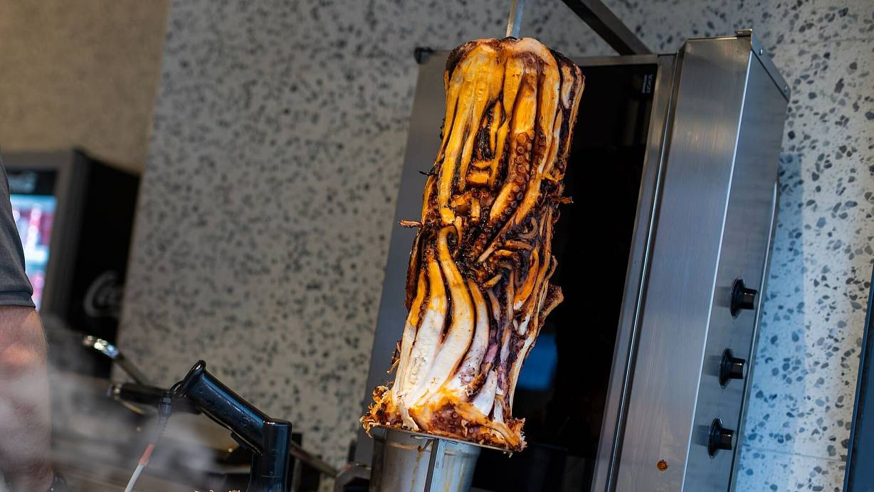 Der klassische Döner ist schon fast so etwas wie Kulturgut in deutschen Fußgängerzonen. In Karlsruhe dreht sich aber kein Fleisch am Spieß, sondern ein Meerestier. Mitten in der Innenstadt serviert die rumänische Kette Pescobar jetzt den «Oktopus-Döner» – allerhand Tentakel mitsamt Saugnäpfen, zusammengepresst in die Form eines Döner-Spießes.