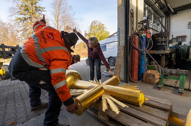 Sie habe 500 Blatt hauchdünnes Blattgold in der Größe von acht mal acht Zentimeter bestellt, sagt Würzinger. Kosten: rund 1.500 Euro. Der Goldpreis ist hoch. «Wir wollen versuchen, nur da zu vergolden, wo kein Gold mehr ist.»