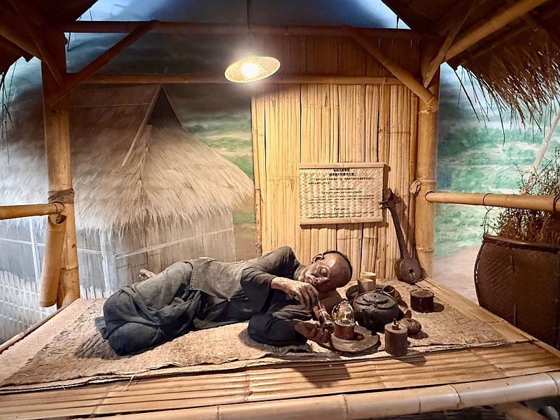 Wenige Kilometer weiter, in der modernen Hall of Opium, wird die Geschichte museal inszeniert: Ein dunkler Tunnel führt in helle Räume mit Filmen, Fotos und interaktiven Stationen. Das Projekt im Auftrag der königlichen Familie will aufklären – über die zerstörerische Macht der Droge und über die Politik, die sie groß gemacht hat: von den britisch-chinesischen Opiumkriegen im 19. Jahrhundert bis zum Schmuggel über den Mekong.