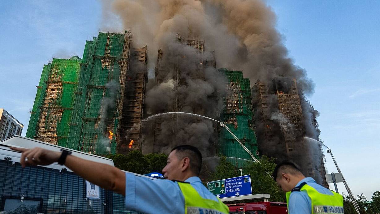 Der Brand war in der Wohnanlage Wang Fuk Court im Stadtteil Tai Po ausgebrochen und wurde rasch auf Stufe 4 hochgestuft - die zweithöchste Gefahrenstufe in Hongkong. Mindestens drei der insgesamt acht Wohnblöcke mit mehr als 1900 Wohnungen waren laut «South China Morning Post» betroffen.