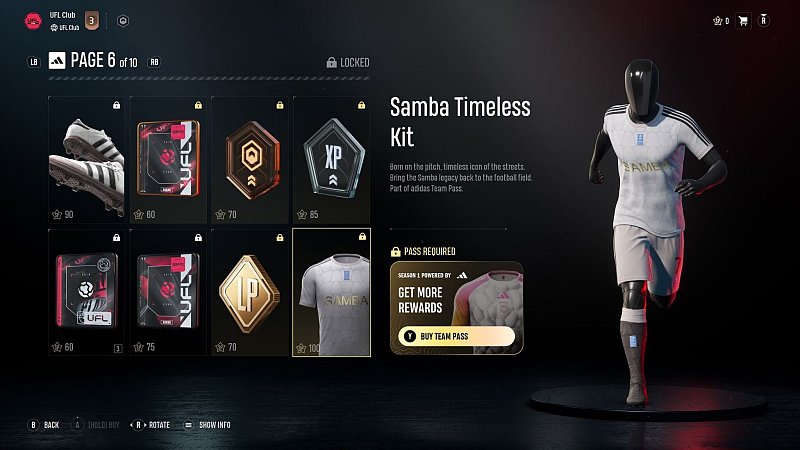 In «UFL» kommen verschiedene In-Game-Währungen zum Einsatz: Credit-Punkte (CP), Liga-Punkte (LP), Reputations-Punkte (RP) und Stern-Punkte (SP). Diese können etwa durch das Abschließen von Aufgaben, das Spielen von Online-Matches oder auch durch den Aufstieg in eine neue Liga verdient werden. Hat man genügend gesammelt, steht den ersten Neuverpflichtungen nichts mehr im Weg.