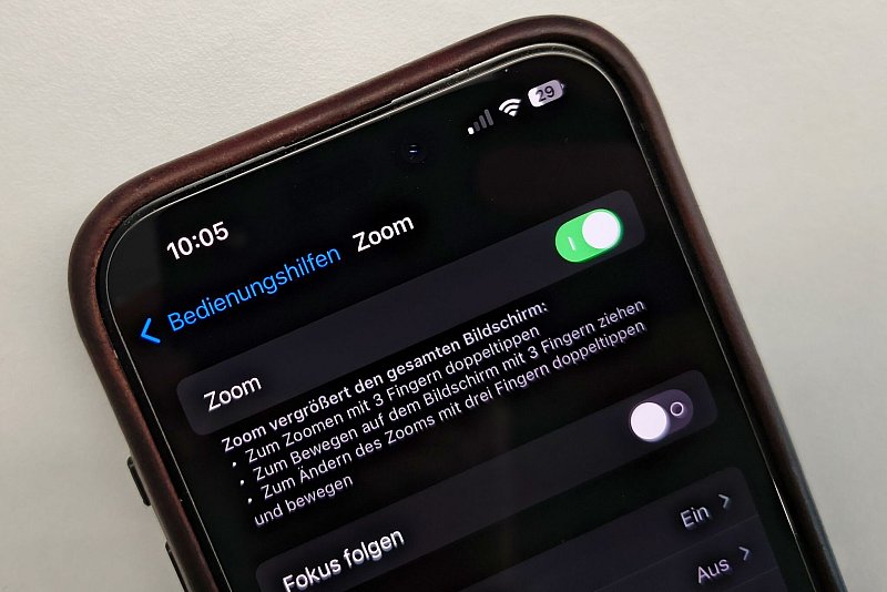 Die Option findet sich unter «Bedienungshilfen» und dort bei «Zoom». Dort kann man den Zoom auch nach den eigenen Bedürfnissen einstellen und sich erklären lassen, wie man die Funktion steuert. So eine Bildschirmlupe für das iPhone kann ja auch mal für Menschen ohne Sichteinschränkung ganz praktisch sein.