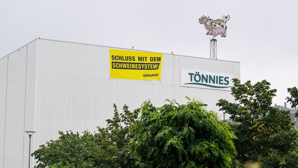 Rheda-Wiedenbrück - Deutschlands größter Schlachtkonzern Tönnies hat nach einer vierwöchigen Zwangspause am Donnerstag am Standort Rheda-Wiedenbrück wieder Schweine geschlachtet. Begleitet wurde die Wiederaufnahme von einer Protestaktion von Greenpeace.