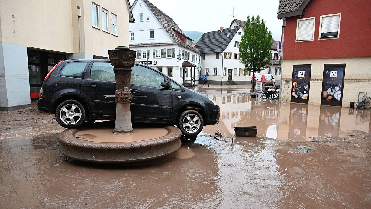 Das Hochwasser im Juni dieses Jahres hat in Ruderberg (Baden-Württemberg) ein Auto weggespült. (Archivbild) | © Bernd Weißbrod/dpa