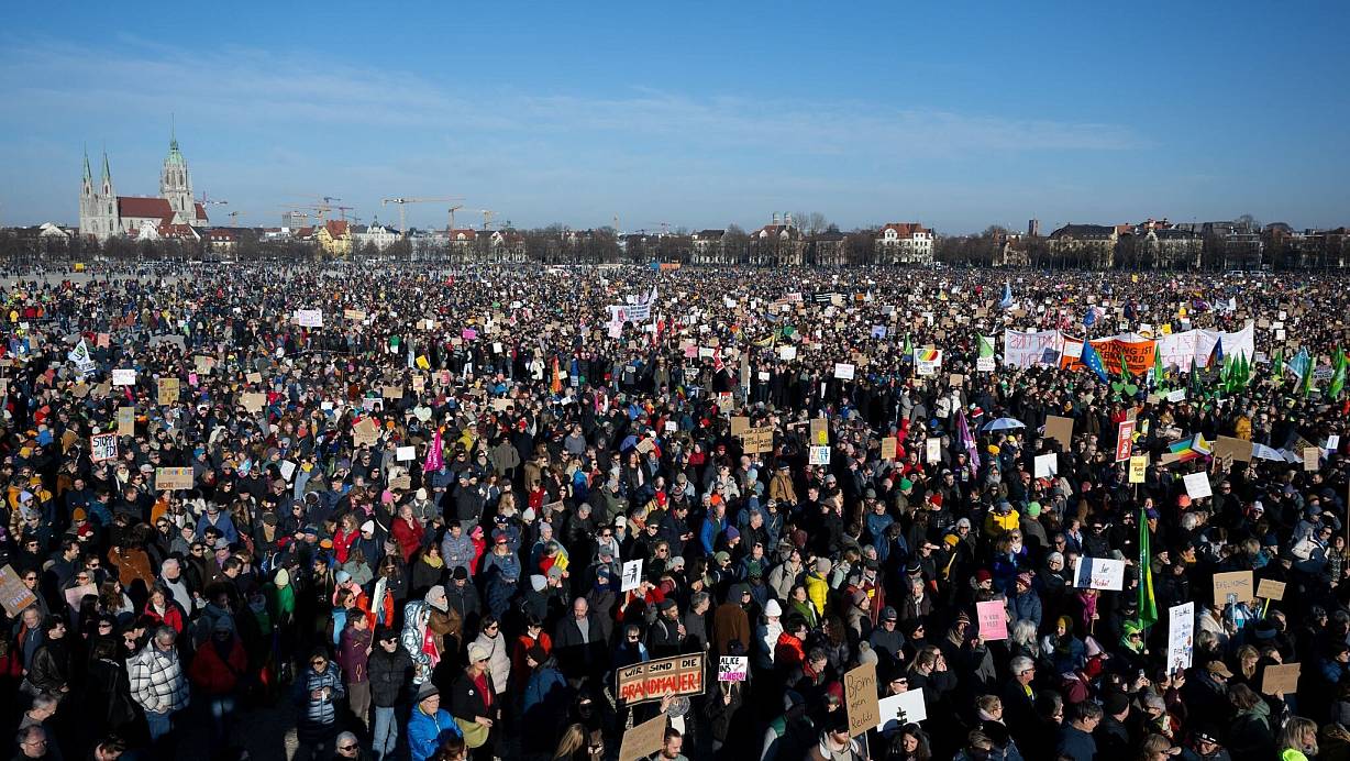 Gegen rechts und für Demokratie sind bundesweit erneut mehrere Hunderttausend Menschen auf die Straße gegangen. Allein in München kamen nach Polizeiangaben mehr als 250.000 Demonstrierende bei strahlendem Sonnenschein auf der Theresienwiese zusammen. Die Veranstalter sprachen von mehr als 320.000 Teilnehmern. Laut Polizei verlief der Protest friedlich.
