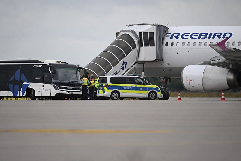 Die Maschine hob um 10.52 Uhr ab, wie auf dem Portal Flightradar24 zu erkennen war. Nach Beobachtung eines dpa-Fotografen hatte die Polizei zuvor die Abfertigung des Fluges abgesichert. Die Passagiere wurden in Kleinbussen der Polizei und mit zwei größeren Flughafenbussen zu der Maschine gebracht. Polizeibeamte begleiteten die Insassen einzeln die Treppe zum Flieger hinauf.