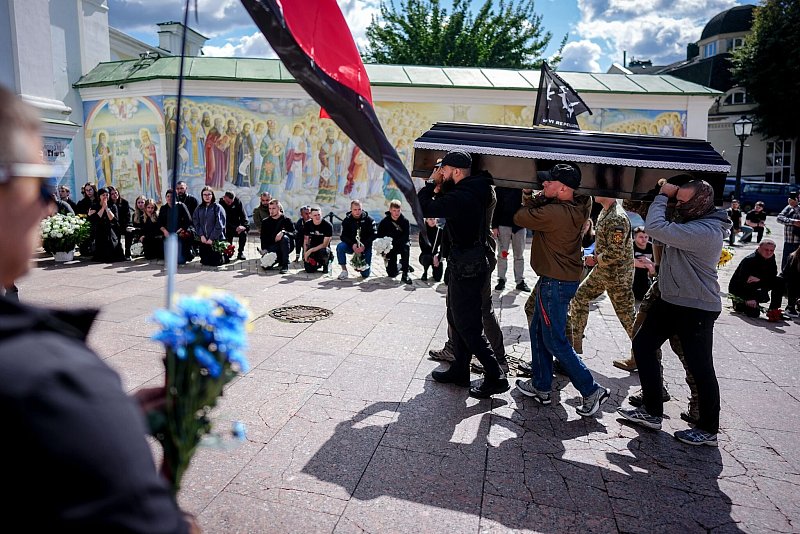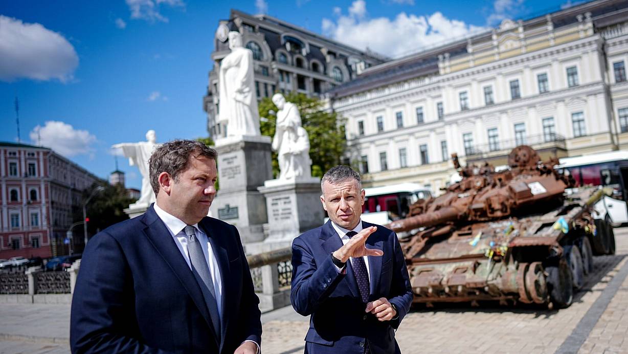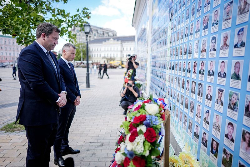 Er besuchte auch den zentralen Michaelplatz. Dort wurden vormittags kaum 50 Meter von Klingbeil Särge mit getöteten Soldaten in Trauerprozessionen in die Michaelskathedrale gebracht. Er gedachte danach zusammen mit seinem ukrainischen Amtskollegen Serhij Martschenko der im Krieg Getöteten.