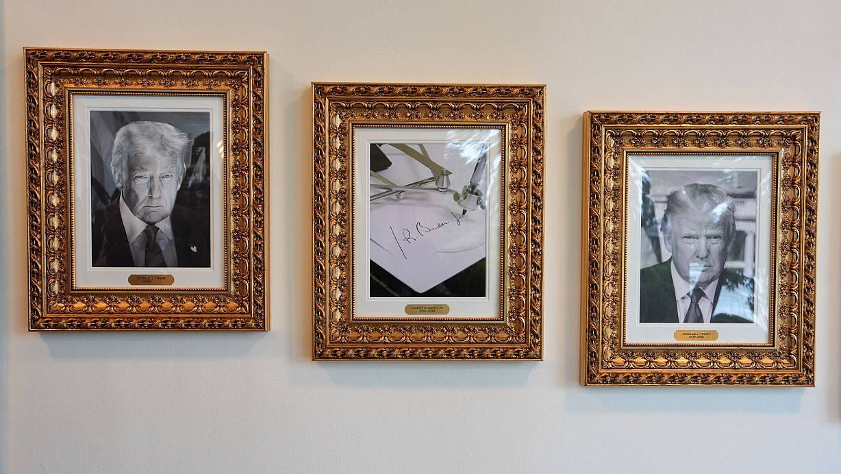 Unter dem von der Regierungszentrale veröffentlichten Foto der Maschine steht Bidens Name und dessen Amtszeit (2021 bis 2025). Die Porträts sind an einer Wand im Außenbereich des Weißen Hauses platziert. Der Platz Bidens ist dabei umrahmt von Trump-Porträts, denn der Republikaner war sein Vorgänger und ist auch sein Nachfolger im höchsten Staatsamt.