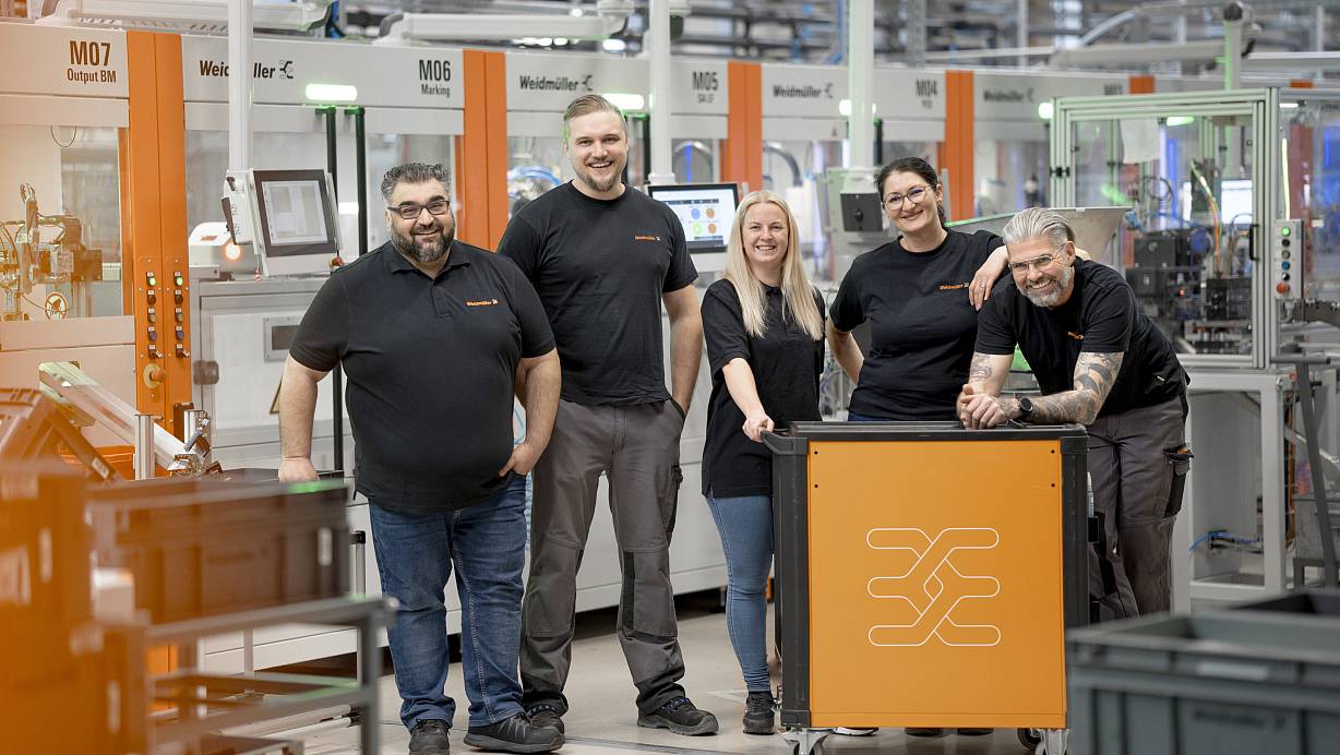 Mitarbeiter stehen in dem neuen Elektronikwerk, das Weidmüller am Standort in Detmold gebaut hat. | © Weidmüller