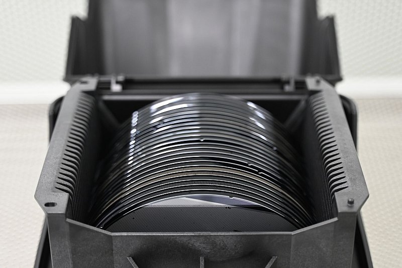 Zwischenprodukte der Halbleiterproduktion, sogenannte Wafer, liegen in einer Box. (Archivbild) - © David Hammersen/dpa