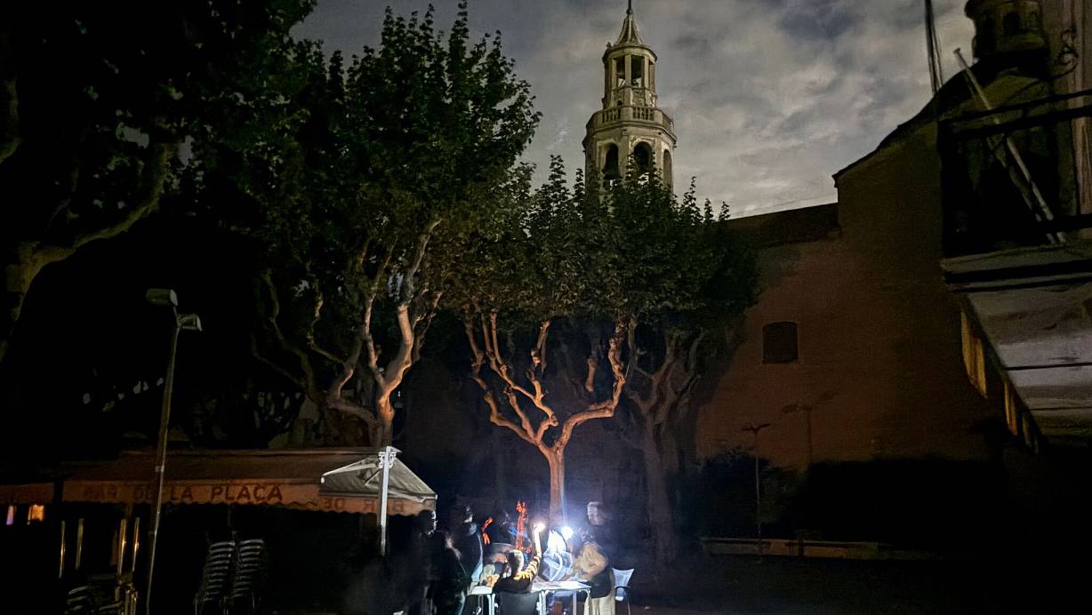 Während des Blackouts sitzen Gäste eines Straßencafés in der Kleinstadt Premià de Mar bei Barcelona im Licht von Taschenlampen und trinken lauwarmes Bier. (Archivbild) | © Jan-Uwe Ronneburger/dpa